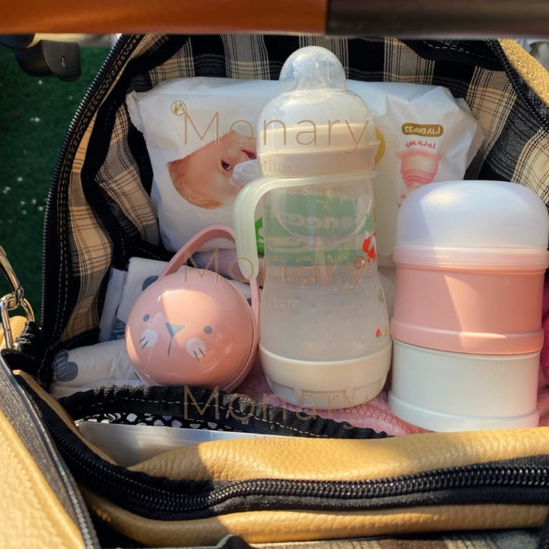 התיק שיקי ויפה, מה שהופך אותו לתיק עגלה מושלם עבור אמהות שאוהבות להראות טוב. התיק רב תכליתי וניתן ללבוש אותו בדרכים שונות שמתאימות להעדפותייך. התיק מציע מקום בשפע ויודע להכיל את כל הציוד שאת צריכה לתינוק שלך, מגיע עם רצועות לעגלה, נרתיק למוצצים, ונרתיק קטן נפרד כדי לשמור אותך מאורגנת בדרכים.